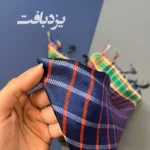 دستمال یزدی ابریشمی چهارخانه آبی سایز بزرگ